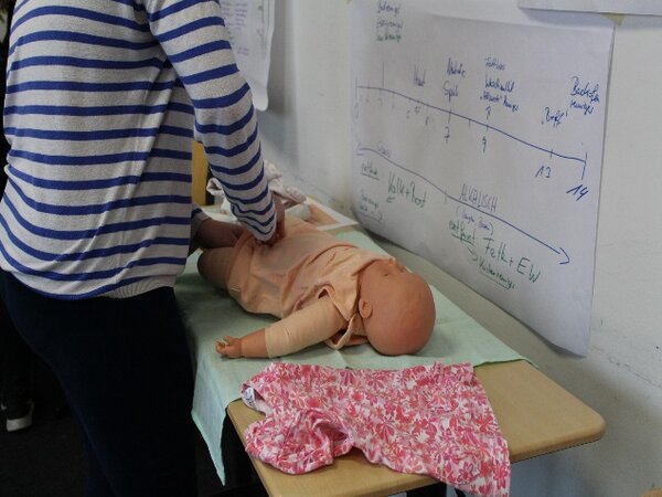 Die Schüler, die sich für den Bereich Gesundheit und Soziales interessierten, besuchten in diesem Zusammenhang die betriebseigene Kita und lernten die theoretischen Inhalte der Erzieher-Ausbildung kennen. Sie erfuhren etwas über den Umgang mit blinden Menschen und lernten einiges zum Thema Herzfunktionen und Puls.