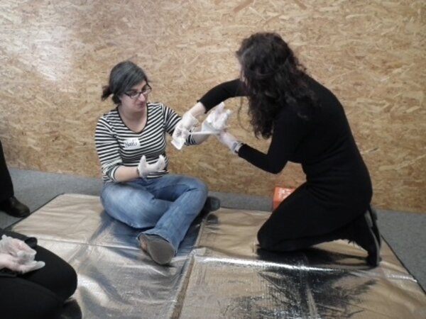 Das Team „fehlende Gliedmaßen“ ist hektisch beschäftigt, die schwere Verletzung schnell und richtig zu versorgen. Da werden Druckverbände angelegt, der Erste-Hilfe-Koffer nach richtigen Hilfsmitteln durchstöbert und das Eisfach des Kühlschranks geplündert. Andere Teams stillen Nasenbluten und kühlen Brandwunden. Glücklicherweise fließt nicht wirklich Blut.