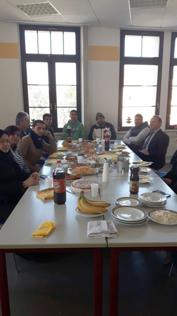 Die Teilnehmer der Kurse 4 bis 6 der Maßnahme „Übergangsmanagement für Migranten mit individuellem Eintritt“ luden zum Abschluss ihres Kurses im Februar 2017 die Mitarbeiter der Euro-Schulen Altenburg zu einem gemeinsamen Essen ein.