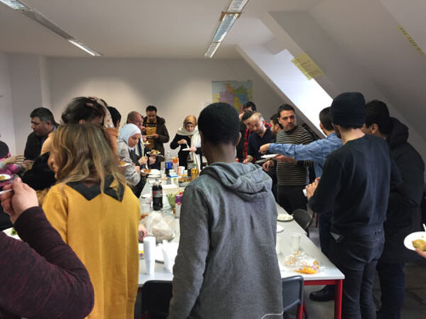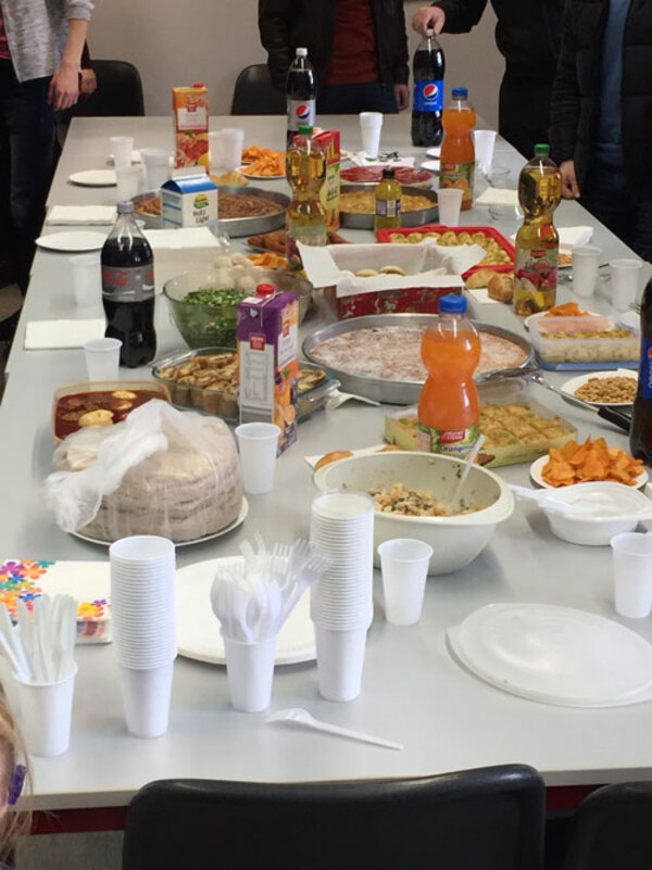 Mit einem lachenden und einem weinenden Auge wurden die ersten beiden KompAS-Kurse an den Euro-Schulen Leverkusen Ende Februar offiziell verabschiedet. Hierzu brachten sowohl Teilnehmer als auch Dozenten allerlei Speisen aus ihren Herkunftsländern mit, wodurch eine interessante und vor allem köstliche Mischung aus Kuchen, Salaten und Naschereien zusammenkam.