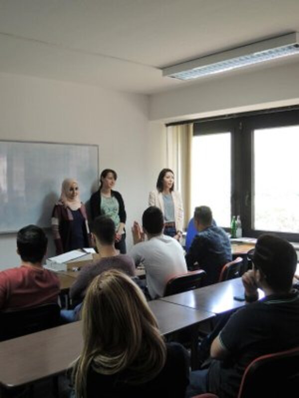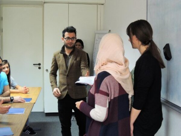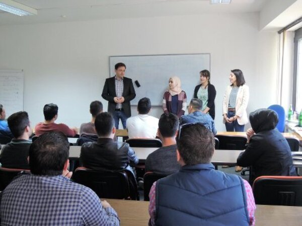 Im Anschluss wurden sowohl KompAS-Zertifikate als auch die Ergebnisse der telc-Deutschprüfung verteilt. Dabei gab es Positives zu berichten: Alle Teilnehmer haben die DTZ-Prüfung zu 100 Prozent bestanden. Im Detail bedeutete dies: