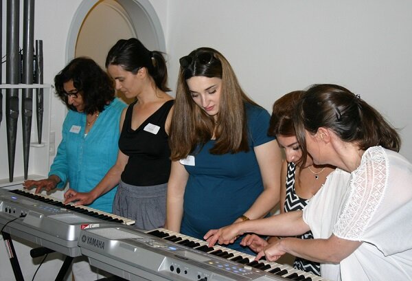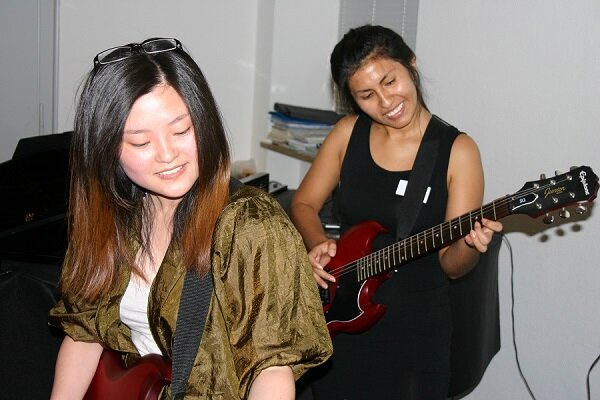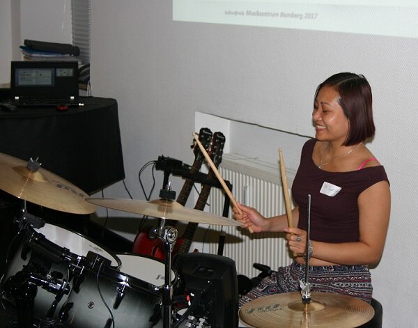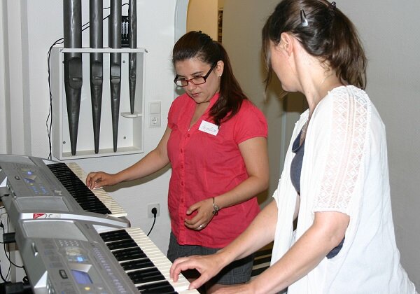 Die Kursteilnehmer waren sichtlich begeistert und probierten die verschiedensten Instrumente, darunter die E-Gitarre, das Keyboard, das Schlagzeug sowie das klassische Klavier, aus.