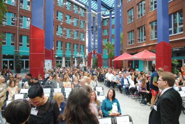 Am Samstag, dem 26. August 2017, feierte der Bildungsraum Berlin-Brandenburg der <link education>ESO Education Group bei sonnigem Wetter sein 25-jähriges Bestehen. Über 500 Gäste waren zum Festakt und der Immatrikulation von 230 neuen Auszubildenden an der Euro Akademie Berlin in die schöne Bambushalle auf dem Campus Top Tegel gekommen.