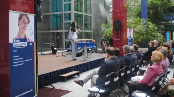 In der über 50-jährigen Unternehmensgeschichte können nun auch die zugehörigen Unternehmen in der Region Berlin-Brandenburg ein Jubiläum feiern. Silvia Semidei erwähnte hier ausdrücklich auch die <link https: www.ebc-hochschule.de standorte campusuebersicht _blank hochschule>EBC Hochschule Berlin und <link>Euro-Train Berlin, die zwar nicht zur Organisationseinheit des Bildungsraums gehören, deren Mitarbeiter aber ebenfalls in Berlin und Brandenburg die Werte und Leitprinzipien der ESO Education Group vertreten. Sie gratulierte den neuen Schülern und deren Angehörigen zu ihrer Entscheidung, an der Euro Akademie Berlin eine Ausbildung zu beginnen.