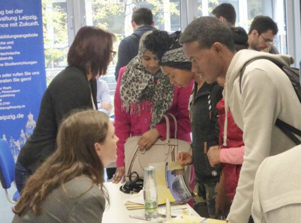 Zusätzlich gaben Vertreter der Handwerkskammer Leipzig Auskunft zu ausländischen Abschlüssen und deren Anerkennung. Auch Ansprechpartner weiterführender Projekte, zum Beispiel der „Berufsorientierung für Flüchtlinge“ (BOF) oder der „Joblinge“, waren vertreten.