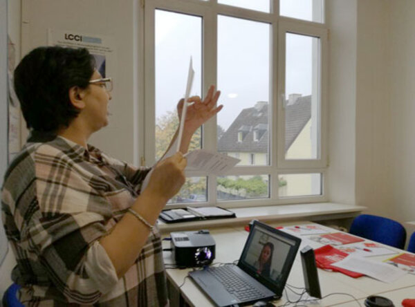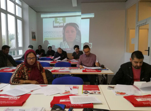 Für eventuelle Sprachbarrieren wurden per Beamer Dolmetscher hinzugeschaltet, die auf spezielle Fragen und Wünsche der Teilnehmer in der jeweiligen Sprache eingehen konnten.