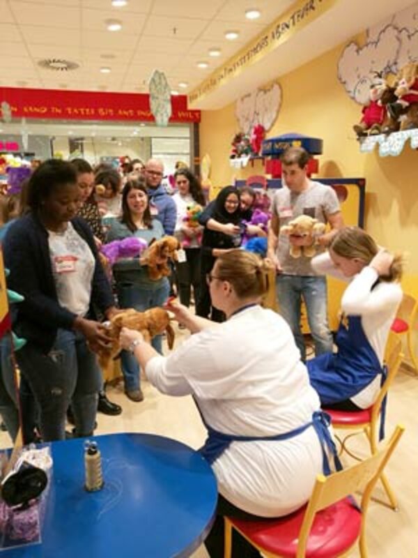 Die MobiPro-EU Teilnehmer fanden sich dafür zusammen und stellten gemeinsam unter fachkundiger Anleitung verschiedene Plüschtiere als Mutmacher und Seelentröster her. So entstanden Teddybären, Schmusekatzen und treue Stoffhunde, welche zunächst einen Namen und eine offizielle Geburtsurkunde erhielten. Danach wurden sie sinnbildlich mit den Lieblingsspeisen der Teilnehmer „gefüttert“ und bekamen ein mutiges, pochendes Herz. Abschließend wurde jedes Stofftier individuell gestaltet und für seinen großen Tag verpackt.