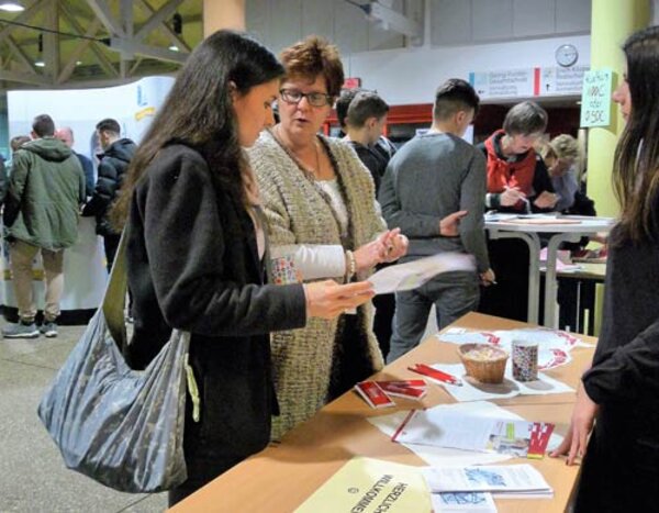 „Wir sind die, die euch helfen, die Prüfungen zu bestehen!“ Mehr als einmal war diese Antwort ein Gesprächseinstieg. Die Schüler, die am 25. Januar zahlreich in den Ausstellungsräumen der Ausbildungsmesse in der Georg-Forster-Gesamtschule in Wörrstadt umherschwirrten, fragten auch am Stand der Euro-Schulen bei einem ihrer Zwischen-Stopps: „Was habt Ihr denn hier anzubieten?“