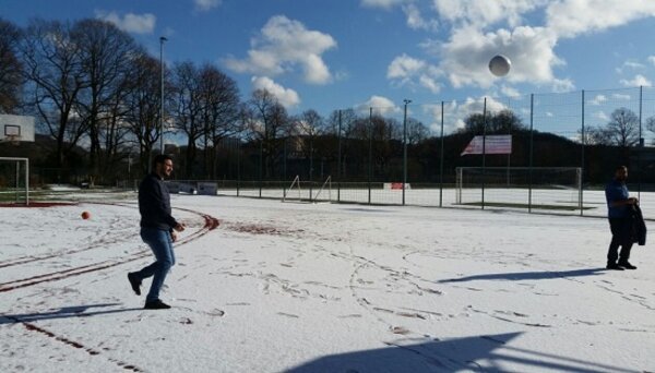 Dem Winter zum Trotz und im Rahmen der Bewegungserziehung spielten die Teilnehmer der Maßnahme Perspektive für junge Flüchtlinge (PerjuF) am 13. Februar 2018 Fußball am Seilersee.