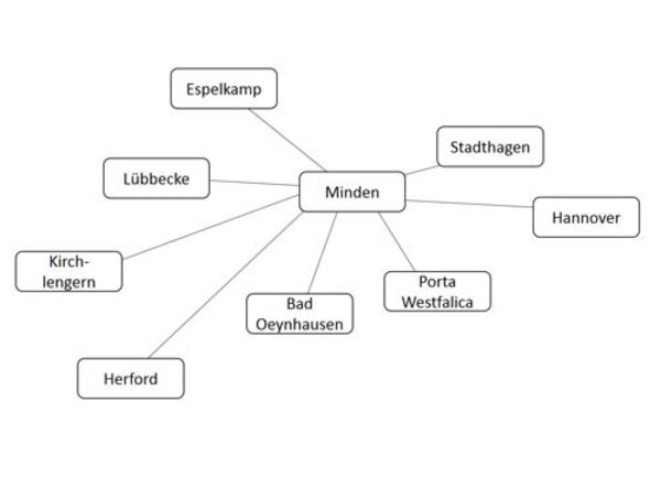 Räumlich gesehen sind die Praktikumsstellen wieder gut über viele Branchen und über die gesamte Region verteilt –wie in den letzten Jahren gewohnt mit Schwerpunkt in Minden (7 Praktikumsstellen) und Porta Westfalica (5). Daneben wurde jeweils ein Praktikum in Lübbecke, Espelkamp, Bad Oeynhausen, Kirchlengern, Herford, Stadthagen und Hannover absolviert.
