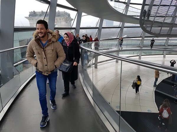 Einige Teilnehmer erzählten, dass sie das erste Mal in der Berliner Mitte unterwegs seien, seitdem sie in Berlin leben. Daher verwunderte es auch nicht, dass sich die Teilnehmer sehr beeindruckt vom Berliner Spaziergang, dem Rundgang in der Kuppel des Reichstagsgebäudes und dem Ausblick auf die Stadt von oben zeigten.