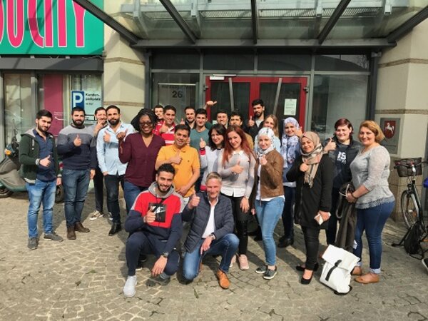 Ein herzliches Willkommen an alle Teilnehmer, die heute, am 16. April 2018, ihren ersten Tag im <link http: www.eso.de hannover unsere-angebote angebot event berufsbezogener-sprachkurs-mit-zielsprachniveau-b2-es-vollzeit _blank external-link-new-window>Berufssprachkurs hatten. In den nächsten vier Monaten werden alle auf das Zielniveau B2 vorbereitet und berufsbezogenes Deutsch lernen. Einhellige Meinung der Teilnehmer: "Gefällt mir!"