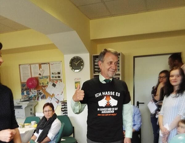 Mit seinem Ausscheiden aus dem Schulalltag reißt er eine große Lücke in unser Team. Die gesamte Belegschaft der Euro-Schulen Jena nutzte die Gelegenheit, um nicht nur die langjährige und stets fachkundige Arbeit des Kollegen Revue passieren zu lassen, sondern ihm auch für seine herausragenden menschlichen Qualitäten zu danken.