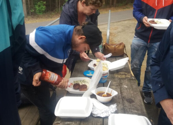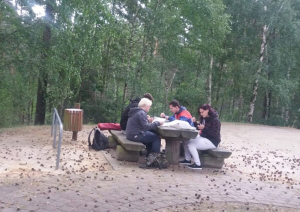 Unsere Ausbilder hatten für uns ein Mittagessen unter freiem Himmel organisiert. Anschließend hat jeder, der Lust dazu hatte, seine Kalorien beim Aufstieg des Aussichtsturmes wieder abgelaufen. Die anderen gingen zum See und prüften die Wassertemperaturen.