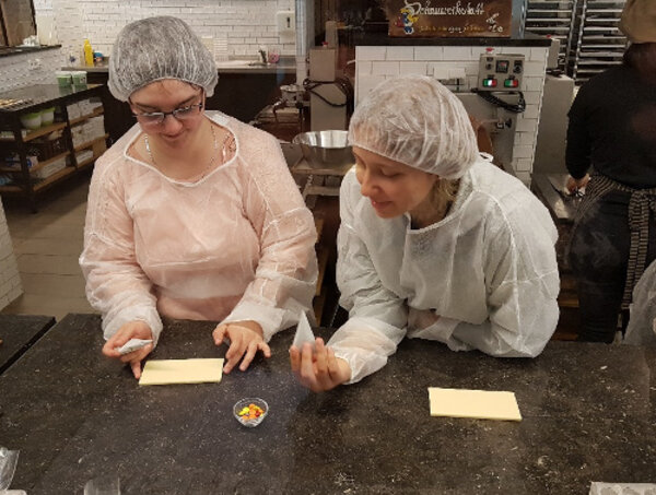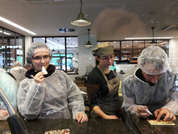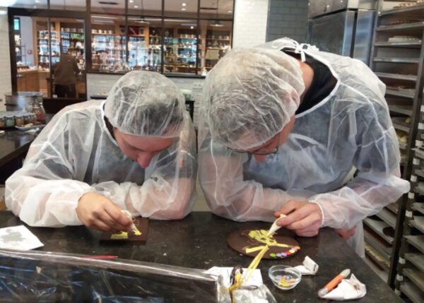 Nach einem interessanten Film über die Firmengründung und er daraus entstandenen Logistik, war es endlich soweit - wir durften selbst ran. Wir kreierten unsere eigenen Schokoladen - mit etwas Hilfestellung wurden daraus kleine Kunstwerke. Nachdem diese ausgekühlt waren und wir noch ein wenig Schokolade genascht hatten, ging es zum Mittagessen nach Felixsee an den See.