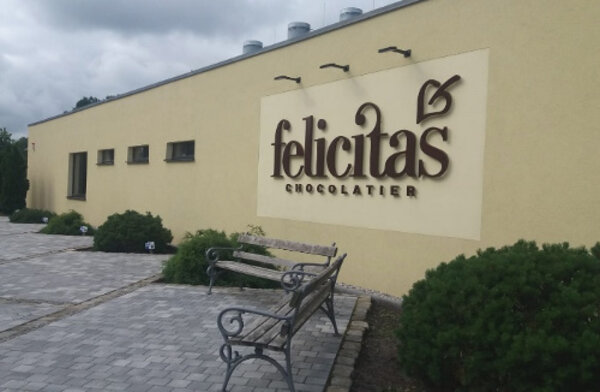 Unsere Ausbilder und Lehrer standen uns als Fahrer zur Verfügung und brachten uns ins Land der Schokoladenträume nach Hornow zur Firma Felicitas. Schon im Eingangsbereich waren wir so richtig glücklich, es roch nach süßer Schokolade und egal wo wir hinsahen war Schokolade.
