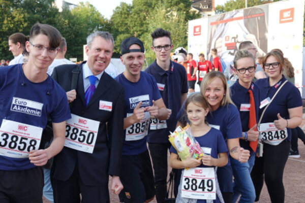 Zehn motivierte Läufer gingen für die <link https: www.euroakademie.de de standorte chemnitz _blank akademie>Euro Akademie und die Euro-Schulen Chemnitz an den Start. „Nicht schlecht, Herr Specht“, „Ich lauf nur hinter meinen Mädels her“, „Überhol doch" – allein die Mottos, unter denen die rund 9000 Starter beim 13. Chemnitzer Firmenlauf am 5. September 2018 bei bestem Wetter an den Start gingen, sorgten schon für lachende Gesichter.