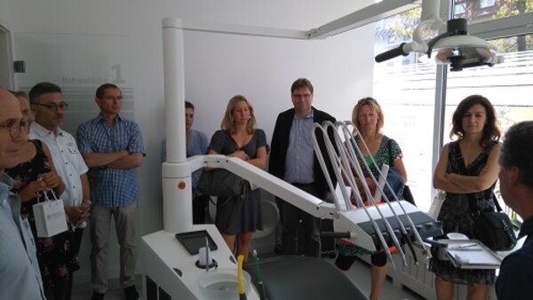 Die Tour wurde zum Unternehmen <link http: www.medentes.de _blank external-link-new-window website des>Medentes Zahnarztzentrum fortgesetzt. Hier erhielten die Teilnehmenden einen umfassenden Einblick in die Ausbildung eines modernen, medizinischen Dienstleisters, bei dem freundlicher Service und eine entspannte Atmosphäre eine ebenso wichtige Rolle spielen, wie eine fortschrittliche Zahnmedizin nach dem aktuellsten Stand der Wissenschaft.