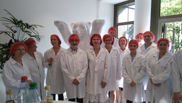 Die Tour startete im Unternehmen <link http: www.freiberger.de de _blank external-link-new-window website des>Freiberger Lebensmittel GmbH & Co. Hier wurde ein Überblick über das Unternehmen und seine Ausbildungsberufe gegeben. Anschließend erfolgte eine Werksführung durch den Produktionsbereich. Bei einer anschließenden Verköstigung konnten sich die Teilnehmenden auch einen geschmacklichen Eindruck verschaffen.