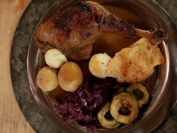 Dann begann das reichhaltige Abendbrot. Bei Ente mit Rotkohl und Klößen, Würstchen und Nachspeise konnte sich jeder satt essen.