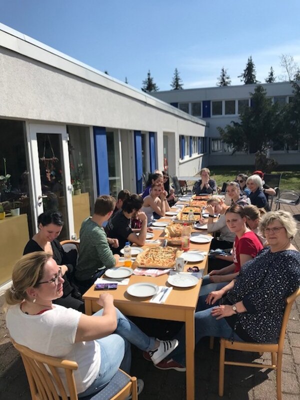 Nach dem Kinobesuch ging es gemeinsam zurück zu den Euro-Schulen. Es begann der Frühjahrsputz in den Klassenräumen und im Freigelände. Nebenbei wurden für alle Azubis und Mitarbeiter Pizzen gebacken, die bei einem gemeinsamen Mittagessen unter der Sonne Hoyerswerdas verputzt wurden. Insgesamt können wir sagen, dass es ein schöner Tag war!
