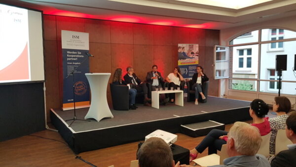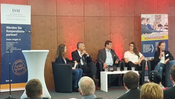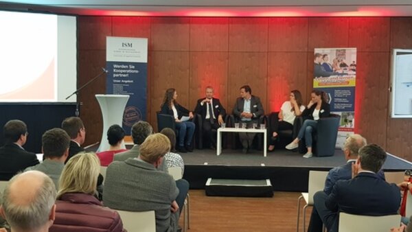 Anschließend diskutierten Dr. Ralf Geruschkat (SIHK zu Hagen), Marie Ting (Südwestfalen - Alles echt), Thorsten Schick (CDU Nordrhein-Westfalen) und Kim Höhne (OFFICE & FRIENDS) unter der Moderation von Lena Reuter zum Thema „Strategien gegen den Fachkräftemangel“.