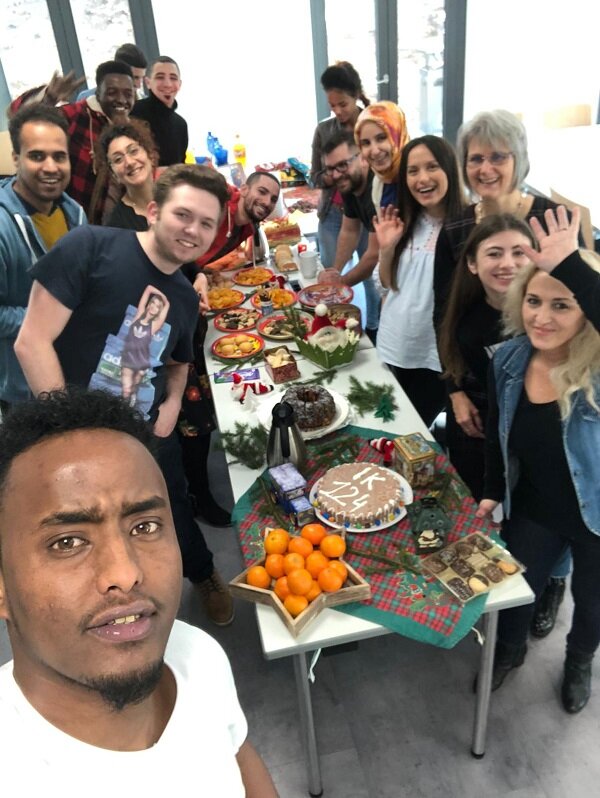 Zum Abschluss wurde die wohl beliebteste Tradition praktisch umgesetzt: die klassische Weihnachtsfeier! Bei allerlei Leckereien – hier standen Köstlichkeiten aus 10 verschiedenen Nationen auf dem Tisch – kam es zu einem regen Austausch über Bräuche an Festtagen in den anderen Herkunftsländern.