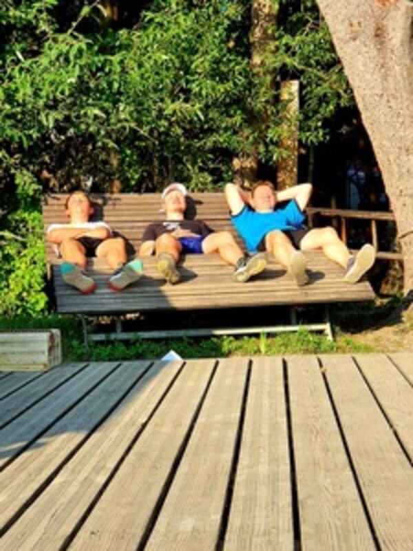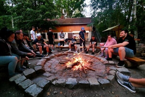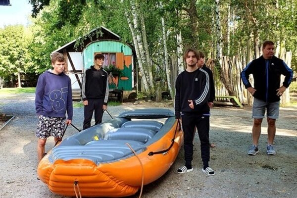 Am Donnerstag gab es um 8 Uhr Frühstück. Nach dem Frühstück haben wir den zweiten Teil der Teamspiele absolviert. Diesmal bekamen wir Rohre und eine Glaskugel. Diese musste vom gesamten Team einmal um das Lagerfeuer transportiert werden, ohne dabei auf den Boden zu fallen. Das war gar nicht so einfach – erst beim dritten Versuch haben wir es geschafft. Danach ging es mit den Schlauchbooten zum Paddeln auf dem Deutschbaselitzer Teich. Mitten auf dem Teich sollten wir die Plätze auf den Schlauchbooten tauschen. Das war eine wackelige Angelegenheit. Niemand wollte ins Wasser fallen, weil das Wasser sehr dreckig war. Aber alles ist gut gegangen! Nach dem Mittag sind wir einmal um den Teich gewandert (6,5 km). Am Nachmittag konnten wir Volleyball oder Tischtennis spielen, das hat viel Spaß gemacht. Abends saßen wir alle gemütlich am Lagerfeuer, haben uns Stockbrot gebacken und den Tag ausklingen lassen.