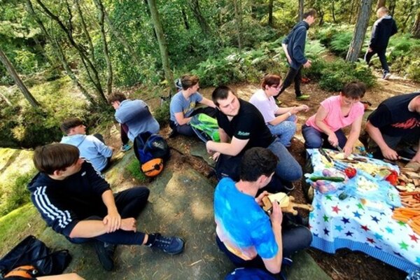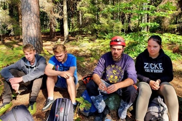 Am Freitag ging es um 9 Uhr in die Sächsische Schweiz bei Königstein. Dort startete unsere Höhlenwanderung. Die Verpflegung haben wir uns auf alle Rucksäcke aufgeteilt. Insgesamt waren wir in vier Höhlen und zwischendurch sind wir durch den Wald gewandert. Mittags gab es ein Picknick – Räuberessen mit schönem Ausblick zur Festung Königstein und auf das gleichnamige Örtchen Königstein. Am besten fanden wir die Zwergenhöhle, das war super eng. Es war eine tolle neue Erfahrung. Dann ging es zurück zu den Fahrzeugen, da gab es lecker Vesper mit Kaffee und Kuchen. Die Höhlentour war das Highlight vom Camp. Alle haben sich in die Höhlen getraut und wir haben uns untereinander geholfen. Auch den letzten Abend saßen wir wieder gemeinsam am Lagerfeuer und es gab noch einmal Stockbrot. Der Tag war einfach super!
