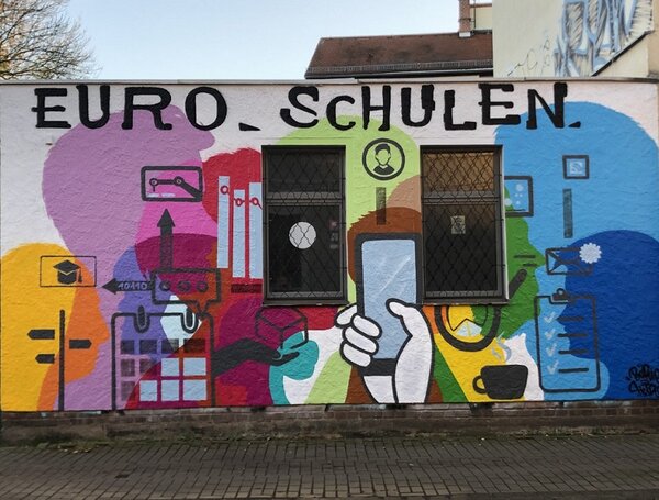 Sowohl das Team der Euro-Schulen Zwickau als auch unsere Teilnehmer*innen dürfen sich nun über den Anblick einer bunten Häuserwand freuen, die nun für Schmierfinken auch nicht mehr attraktiv genug sein dürfte, um sich hier verewigen zu wollen.