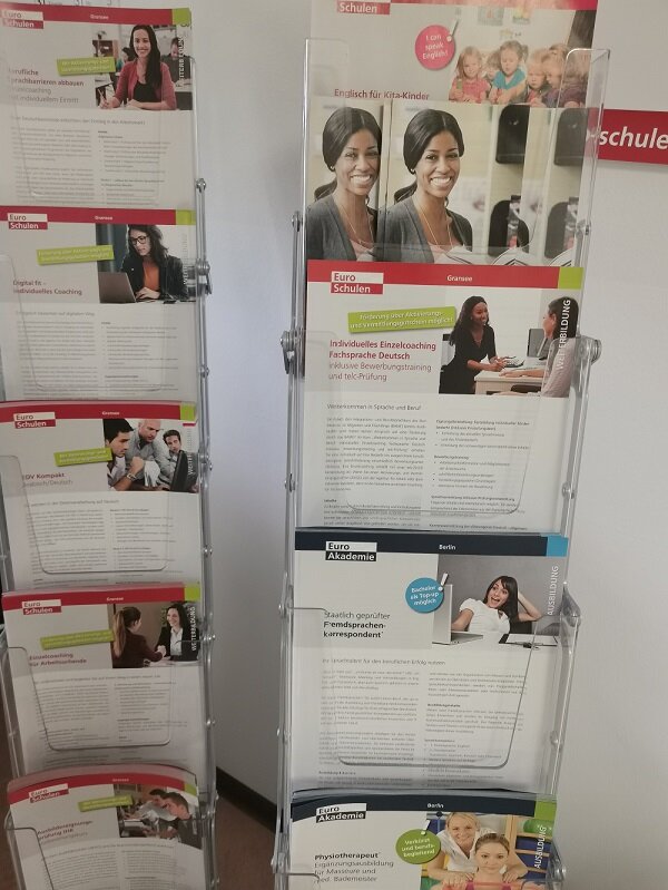 Die Räumlichkeiten wurden dem erhöhten Beratungsaufkommen angepasst und in diesem Zuge auf den neuesten Stand gebracht. Da unser „Untermieter“, die Agentur für Arbeit Gransee, ausgezogen ist, wird gerade der Eingangsbereich in der Templiner Straße neu gestaltet. Neben einer verbesserten Beschilderung zu den Räumen der Euro-Schulen im ersten Stock wird auch hier künftig das Angebot des Standorts präsentiert.