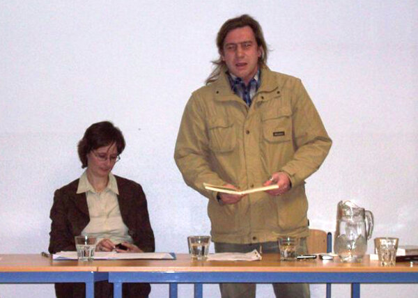 Im Rahmen der diesjährigen Buchmesse in Leipzig fand am 16. März 2012 eine Veranstaltung unter dem Titel „Neue russische Poesie und Dramatik auf dem Prüfstand“ statt. Mit dabei war der Autor und Übersetzer Anatolij Grinvald (auf dem Foto stehend). Grinvald, der an diesem Abend einige seiner Gedichte vortrug, besuchte im letzten Jahr an den Euro-Schulen Leipzig einen berufsbezogenen Deutschkurs (ESF-BAMF-Programm).