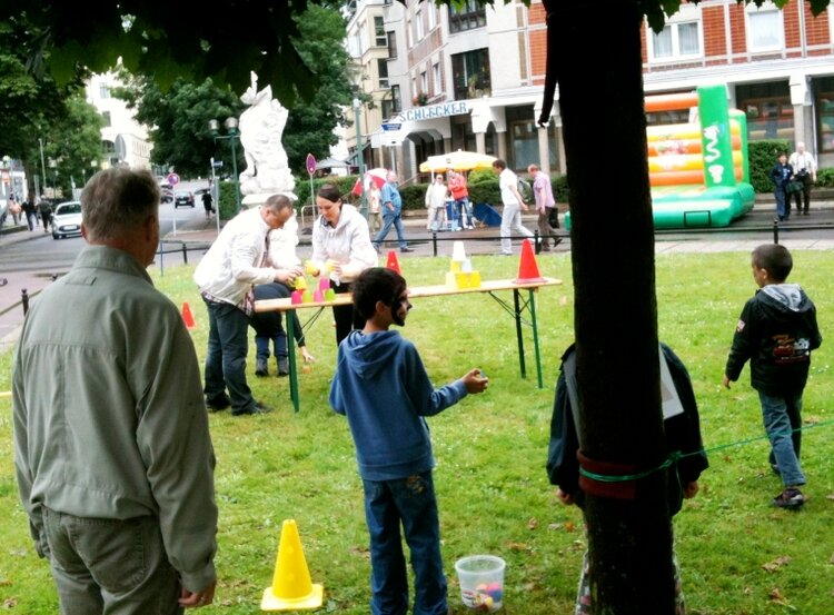 Am Samstag, den 07.07.2012, betreuten engagierte SchülerInnen der Erzieher- sowie Sozialassistenausbildung das traditionelle Kollefest im Kolonadenvertiel. Dort boten sie einen Informations- und Bastelstand mit Mal- und Falttechniken sowie zahlreiche kleinere Aktivitäten an, wie Dosenschießen, Parcourlauf, Fussball, Hüpfburg und Wikingerspiel. Während der ganzen Zeit und besonders in der Nachmittagssonne hatten zahlreiche spiellustige kleine und große Gäste viel Spaß mit unseren gut gelaunten Schülern.