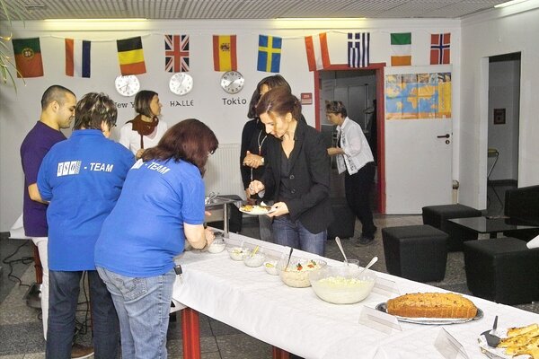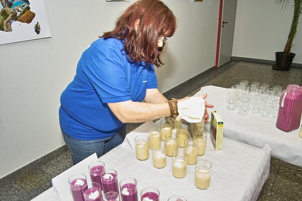 Zur Begrüßung wurden von den Mitarbeitern und Schülern des Bereiches Sozialassistenz der ESO Bitterfeld-Wolfen frisch zubereitete gesunde Frühstücksdrinks wie beispielsweise ein Himbeer-Buttermilch-Drink zur Verkostung angeboten.