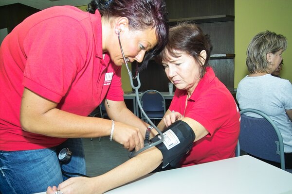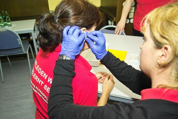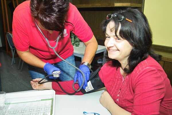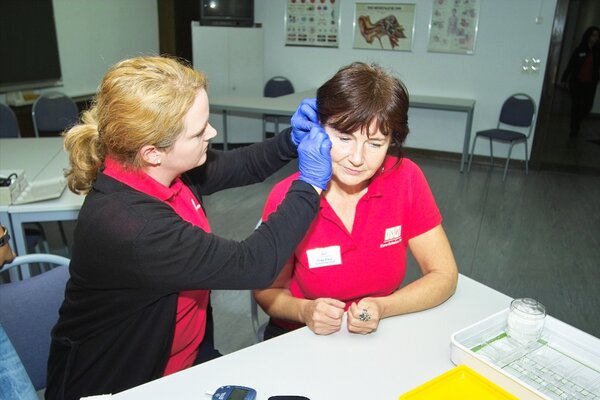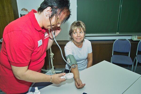 Auch der durch den Bereich Altenpflege der Euro-Schulen Halle durchgeführte kurze Gesundheitscheck in Form von Blutdruckmessung und Bestimmung des Blutzuckerspiegels stieß bei den Teilnehmern auf großes Interesse.