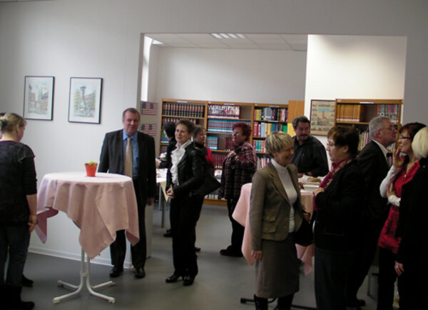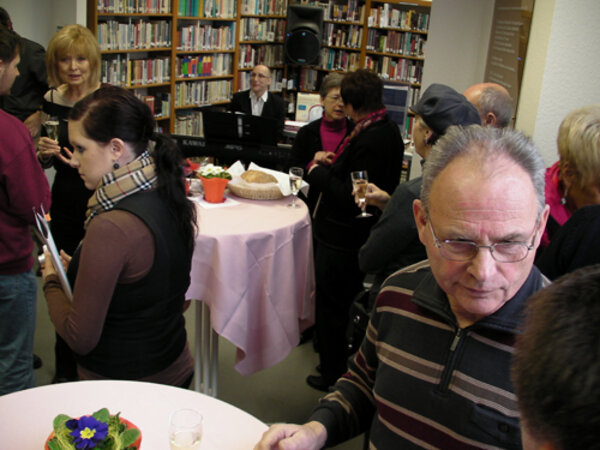 Die etwa 70 Gäste erhielten im Rahmen einer Erinnerungsreise zu den Anfängen Einblicke in die vielfältigen Angeboten und Aktivitäten der Europa-Bibliothek. Mit musikalischer Untermalung konnten sich die Anwesenden mit den neuen Bibliotheksräumen und dem aktualisierten Buchbestand vertraut machen. Viele der Gäste nutzten den Anlass, um neue Kontakte zu knüpfen und Möglichkeiten der Zusammenarbeit zu besprechen.