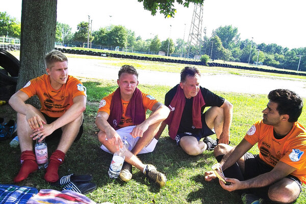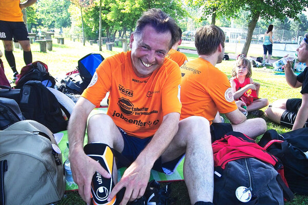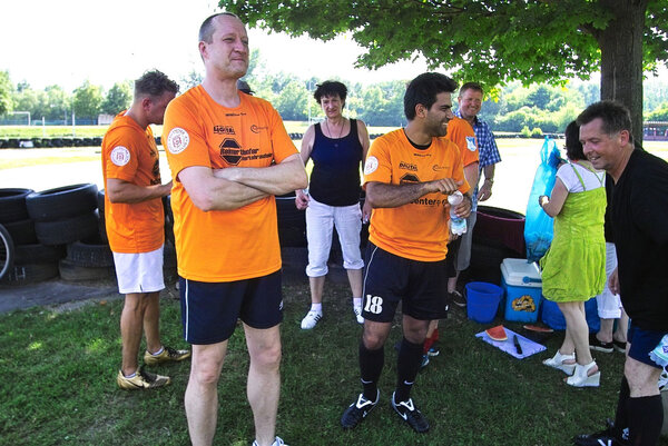 "Ohne Kampf kein Sieg" - an diesem 19. Juni auf dem Sportplatz des FSV 67 in Halle-Neustadt war es insbesondere der Kampf gegen 37 Grad, gnadenlose Sonne und unbändigen Durst, den die Fußballspieler zu bestreiten hatten. Trotz der extremen Hitze haben alle durchgehalten und ihr Bestes gegeben. Immerhin bestand eine der Mannschaften nur aus Arbeitgebern, darunter auch Geschäftsführer von Partnern des Arbeitsmarktservicezentrums ASZ50. Das ASZ50 ist ein gemeinsames Projekt der Euro-Schulen Halle und dem IHK-Bildungszentrum Halle Dessau im Beschäftigungspakt „Jahresringe“.