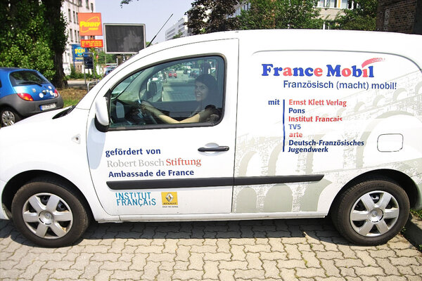 „FranceMobil“ wendet sich an Schüler, die Französisch lernen oder lernen wollen und generell Interesse an der französischen Sprache und Kultur haben. Seit mehr als 10 Jahren fahren sie durch Deutschland: Die bunt gestalteten Fahrzeuge, mit denen die jungen Lektoren unterwegs sind, sind kleine französische Kulturinstitute auf Rädern, die ein Stück Frankreich an deutsche Schulen bringen.