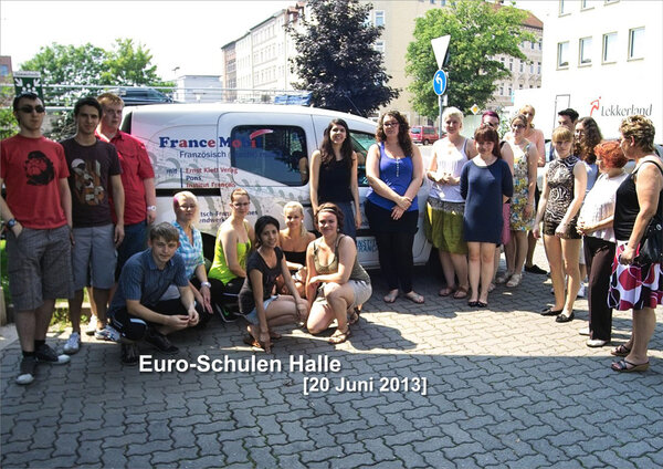 Sie besuchen Schulen, werben für Frankreich, die französische Sprache und die deutsch-französische Zusammenarbeit: die Referenten des Programms „FranceMobil“. Am 20. Juni 2013 war „FranceMobil“ zu Gast an den Euro-Schulen in Halle. Lektorin Laura Gilles vermittelte den Anwesenden sehr anschaulich wie spannend, jung und dynamisch Frankreich ist und wie viel Spaß Französisch lernen machen kann. Sie begeisterte alle mit ihrem „französischen Charme“ und hinterließ bei den Schülern und Französisch-Lehrern der Euro-Schulen einen bleibenden Eindruck.