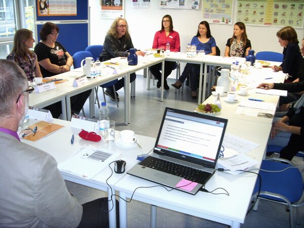 Unter dem Motto "Neue Wege zur Fachkräftegewinnung" luden die Euro-Schulen Leipzig im Rahmen der interkulturellen Wochen am 24. September zum Informations- und Erfahrungsaustausch ein. Dabei standen das bundesdeutsche Sonderprogramm MobiPro-EU für ausbildungsinteressierte Jugendliche und junge Fachkräfte aus Europa sowie die Förderung berufsbezogener Deutschkurse für Beschäftigte mit Migrationshintergrund im Mittelpunkt. Zu diesen Themen referierten Gabriele Littau, Leiterin des