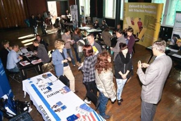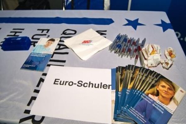 Der Informationsstand der Euro-Schulen Halle war sehr gut besucht. Zusätzlich wurden ebenfalls Einladungen für die ab sofort stattfindenden "Berufsinformationstage" an den Euro-Schulen Halle ausgesprochen.