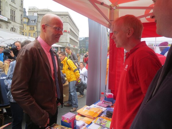 Zahlreiche Bürger und Bürgerinnen mit und ohne Migrationshintergrund „stürmten“ den Stand der Euro-Schulen, um sich über ESO und Interkulturalität zu erkundigen. Auch Oberbürgermeister Wiegand, die Beauftragte für Migration und Integration der Stadt Halle, Frau Schneutzer und die Integrationsbeauftragte des Landes, Frau Möbbeck zeigten sich sehr interessiert, insbesondere, was die Projekte sowie das Sprachkursangebot der Euro-Schulen Halle betraf.