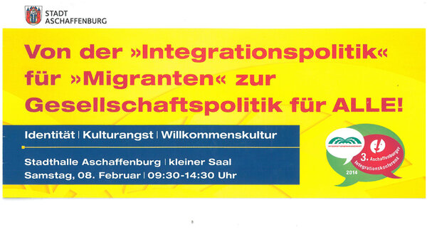 Am 8. Februar 2014 fand die dritte Integrationskonferenz der Stadt Aschaffenburg statt. Migrationsforscher Prof. Klaus Bade sprach über Willkommenskultur und Hilfe in der neuen Heimat. Aschaffenburg ist auf dem richtigen Weg.