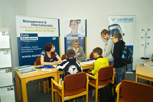 Als Partner im Projekt MobiPro EU erhielten die Euro-Schulen Halle zusammen mit der Euro Akademie Halle jetzt erstmalig die Gelegenheit, beim Tag der offenen Tür 19. Juni 2014 im Bildungs- und Technologiezentrum der Handwerkskammer Halle (Saale) in Osendorf ihre Ausbildungsangebote mit einem eigenen Informationsstand vorzustellen. Für diese Möglichkeit bedanken sich Euro-Schulen und Euro Akademie ganz herzlich bei den Kollegen der Handwerkskammer Halle (Saale). Die Teilnahme an der Informationsveranstaltung ist auch Ausdruck einer sehr guten Zusammenarbeit der Partner bei der Vorbereitung der Portugiesen auf ihre Ausbildung ab September 2014 in Berufsfeldern der Altenpflege und des Handwerks.