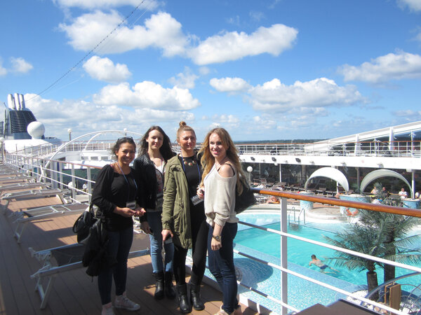 Bei jeder Kreuzfahrt steht das Schiff selbst als Attraktion im Vordergrund. Den Azubis wurde gleich beim Betreten der Rezeption und Eingangshalle deutlich, dass „jedes Schiff eine eigene Destination“ ist. Sie waren fasziniert von dem großzügig-extravaganten und mediterranen Interieur des Kreuzfahrtschiffes. Die Besichtigungstour führte über fast alle Decks. Die Gruppe konnte verschiedene Kabinentypen anschauen - mit unterschiedliche Größe und Ausstattung - und deren Vorzüge unmittelbar erfassen. Weitere Bordeinrichtungen wie der große Theatersaal, die Disco, die Bibliothek, das Schiffscasino, die Sport- und Wellnessbereiche und diverse Restaurants und Bars wurden auf dem Rundgang gezeigt.