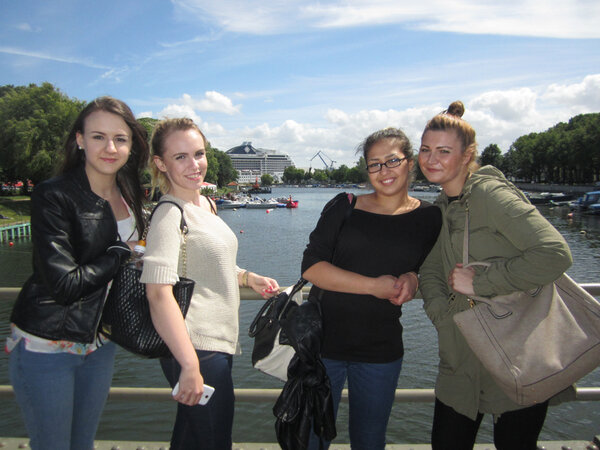 Verbundausbildung Tourismuskauffrau/-mann. Schon die Bahnfahrt mit dem Regionalexpress nach Rostock am 22. Juni hielt viele neue Eindrücke für die großstädtischen Azubis bereit. Alle waren begeistert von den wechselnden idyllischen Landschaften Brandenburgs, der Mecklenburgischen Seenplatte und schließlich der Ostseeküste in Warnemünde. Nach 3-stündiger Zugfahrt wurden die Azubis von strahlendem Sonnenschein und einer frischen Meeresbrise begrüßt.