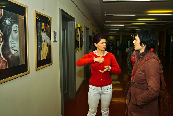 Deutschkursteilnehmerin aus dem Iran stellt Kunstwerke aus