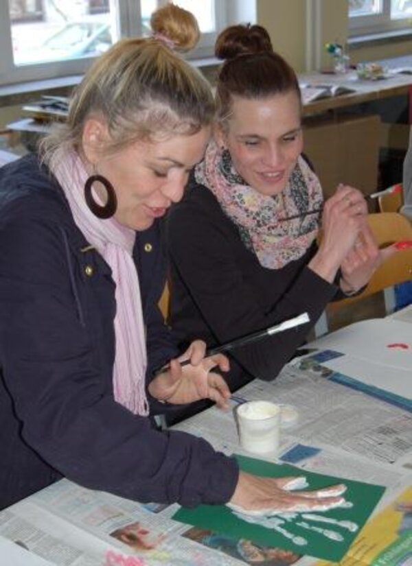 In der Kreativwerkstatt der Euro-Schulen Leipzig malten und druckten sie mit Fingermalfarbe und Kreide. Außerdem erhielten die Teilnehmerinnen Informationen darüber, welche Materialien und Techniken besonders für Kleinkinder geeignet sind.