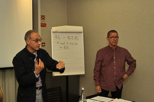 Nachdem sie Anfang Februar über Skype-Interviews ihre zukünftigen Ausbildungsbetriebe kennenlernen konnten, wurden im April in Lissabon und Porto die Projektabläufe durch Vertreter der Euro-Schulen Halle erläutert, die Stadt Halle vorgestellt und Fragen beantwortet.