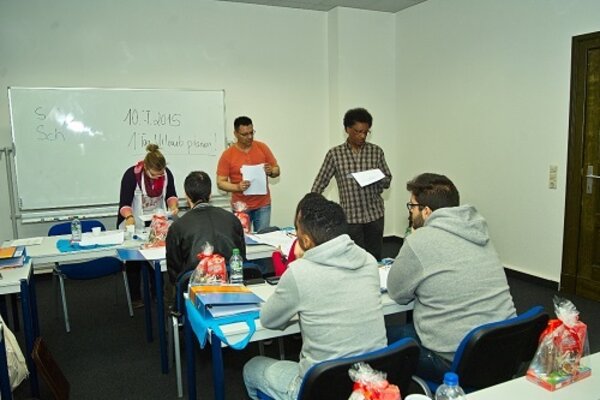 Und obwohl Wettergott Petrus die Temperaturen in Halle nicht an jene aus portugiesischen Gefilden angepasst hatte, ließen sich die Teilnehmer ihre Vorfreude und gute Laune nicht nehmen. Vor allem mit der positiven Aussicht, dass in den nächsten Tagen auch für Deutschland ein Quäntchen mehr Sonne angekündigt wurde. Dies sollte der persönlichen Motivation der Ausbildungsbewerber nur entgegenkommen, denn schließlich wollen sie beweisen, dass sie gewillt sind, ab September 2015 eine duale Ausbildung zu beginnen und erfolgreich zu absolvieren.